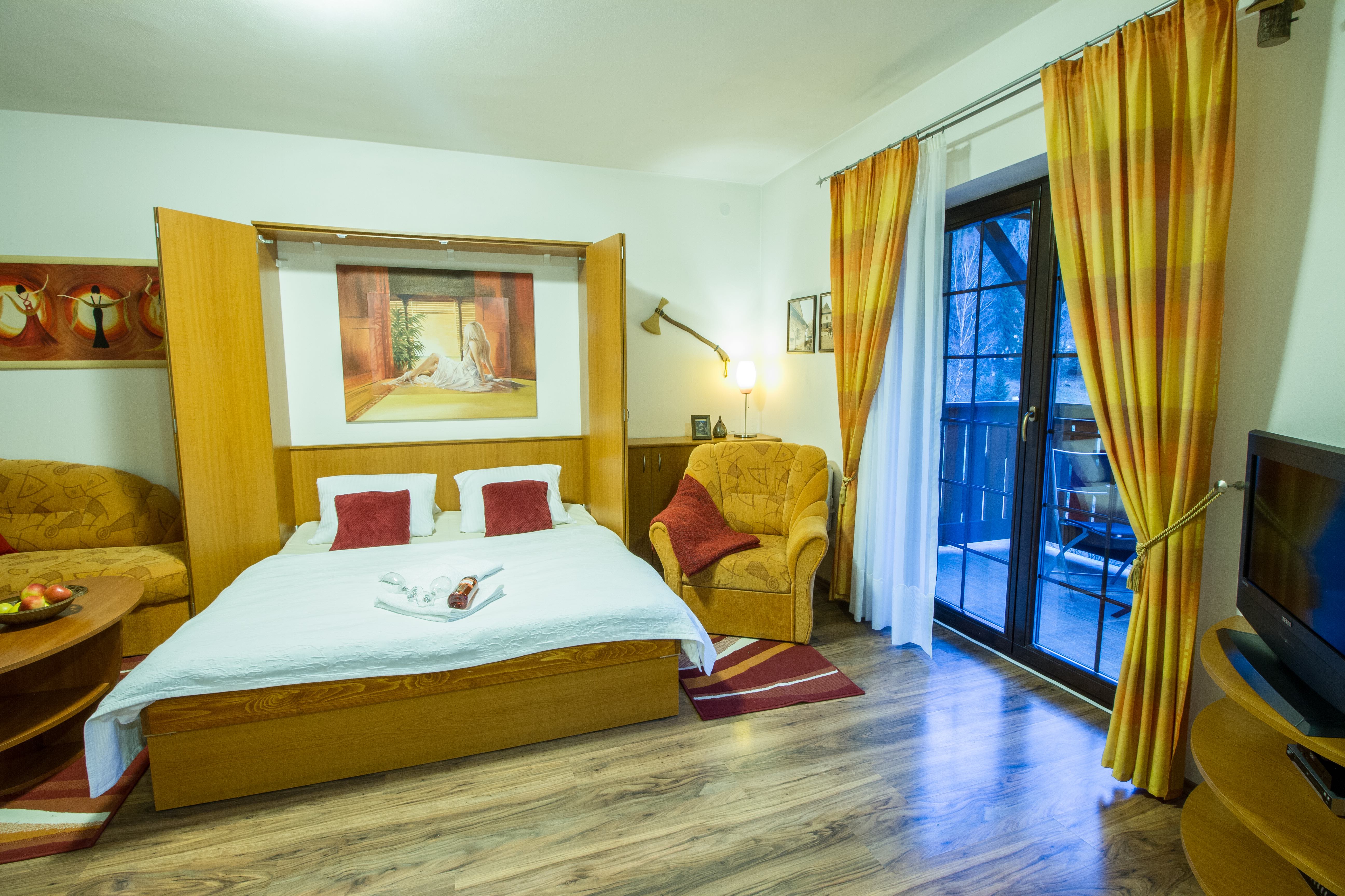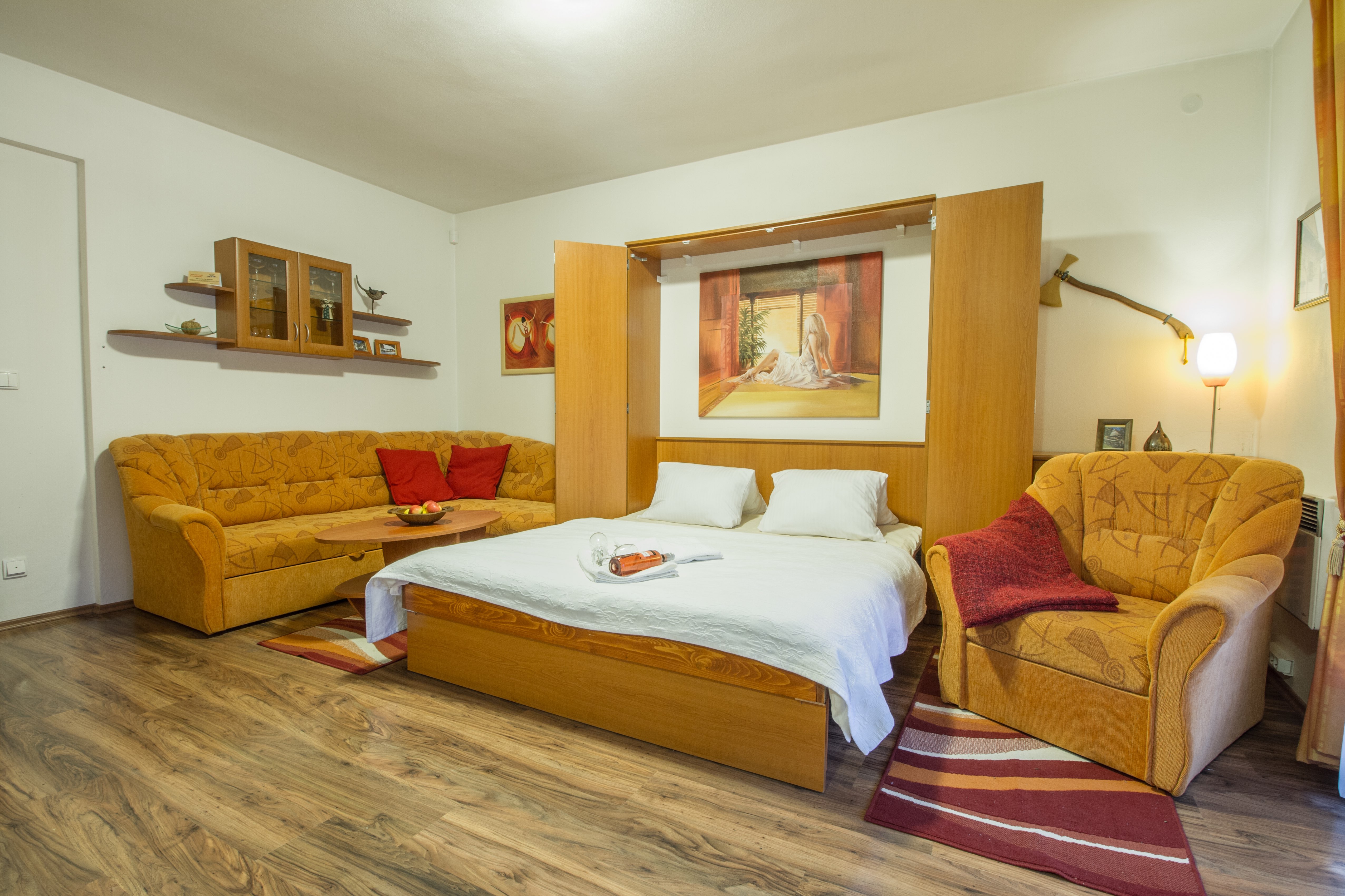 Apartmán ponúka štandardné ubytovanie pre 2 osoby s možnosťou prístelky.