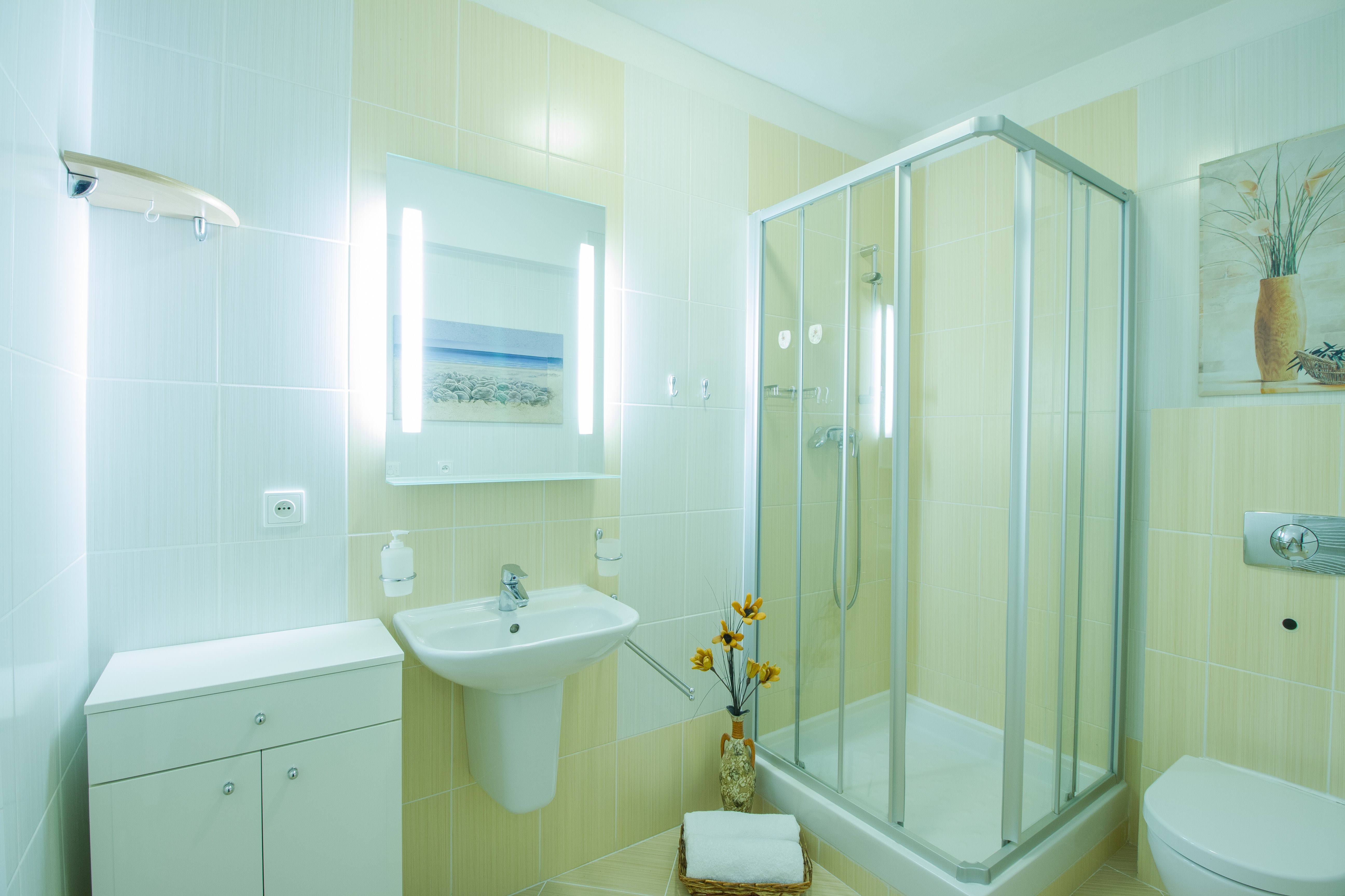 - Vlastná kúpeľňa so sprchovacím kútom, WC a umývadlom.