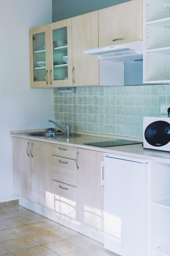 Kuchyňa: kuchynská linka, sklo keramická doska s 2 platňami, mikrovlnná rúra, varná konvica, chladnička s výparníkom.