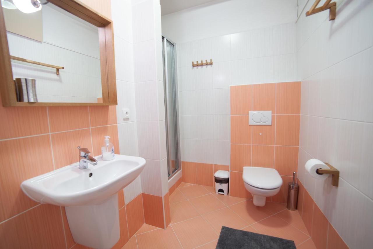 - Vlastná kúpeľňa so sprchovacím kútom, WC a umývadlom.